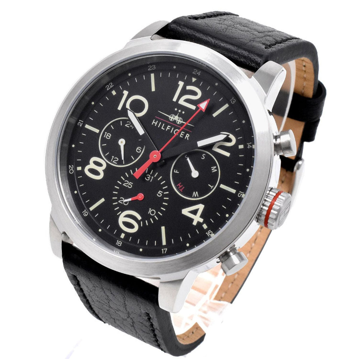Tommy Hilfiger Jake Chronograph Black Dial Black Leather Strap Watch for Men - 1791232
