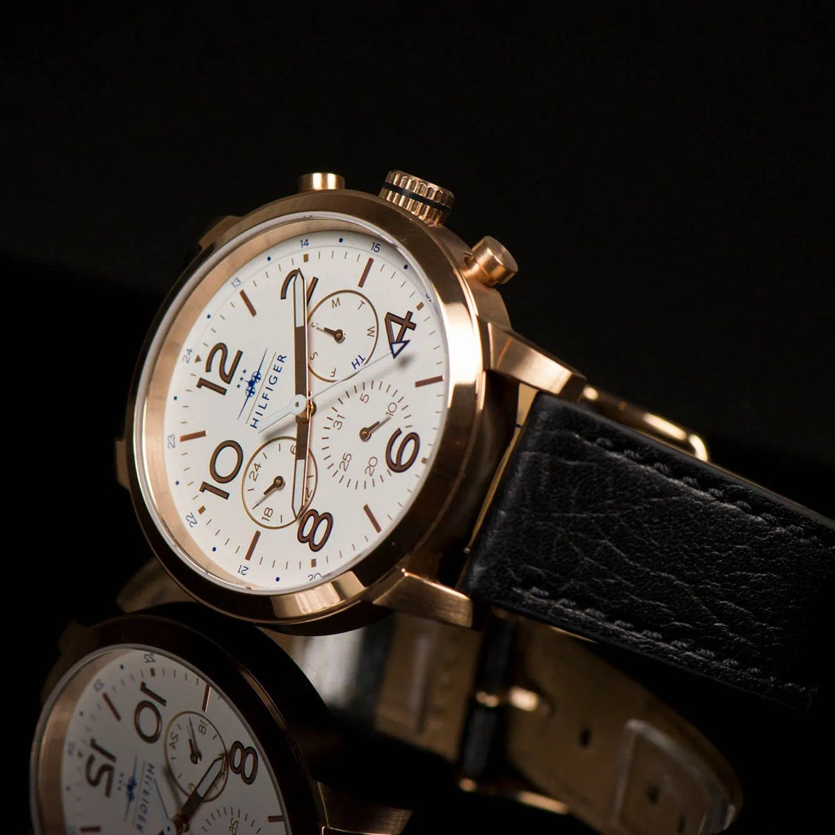 Tommy Hilfiger Jake Multifunction White Dial Black Leather Strap Watch for Men - 1791236