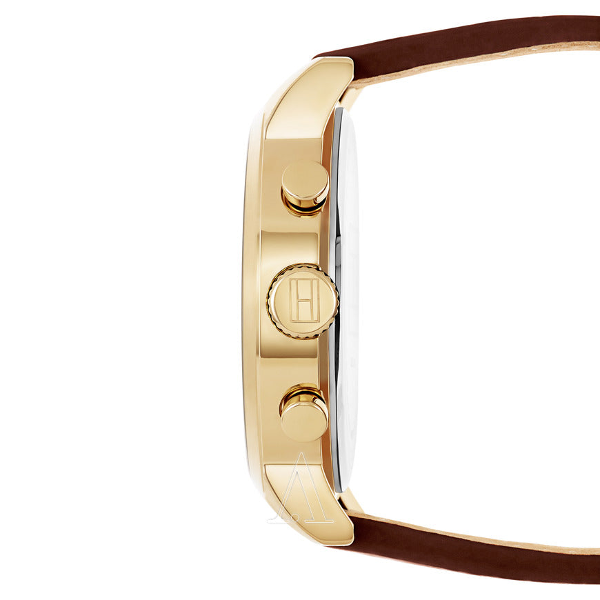Tommy Hilfiger Jake Quartz White Dial Brown Leather Strap Watch for Men - 1791231