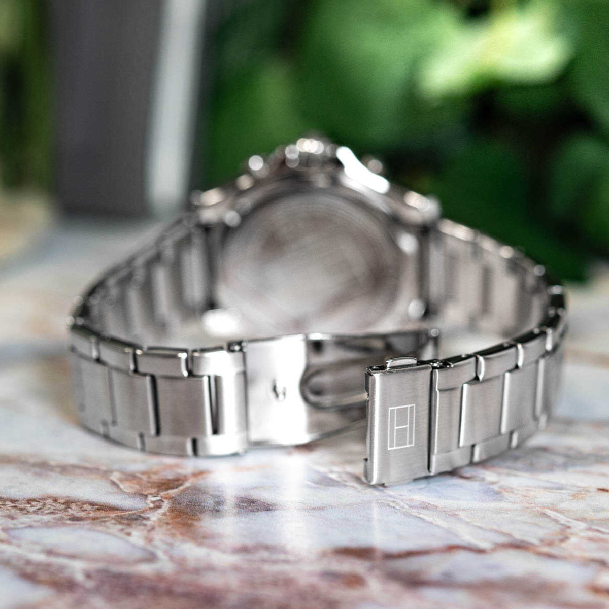 Add a touch of luxury with this Tommy Hilfiger Jordan – 1792094 gents watch. This is a sophisticated timepiece that features a quartz multi-functional movement, with a 43mm case. Constructed with a stainless-steel case and bracelet, the vibrant navy-blue dial contrasts so effortlessly against the silver. The 50 meters water resistance and push button deployment clasp on the band ensures the durability and a comfortable fit of the watch. This is a stunning watch, with hints of luxury and sophistication to subtly elevate your style.