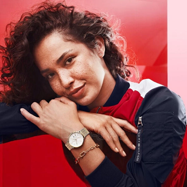 The tommy hilfiger jenna 1782074 is fitted with a quartz movement and a stainless steel case. The silver dial is housed by a silver coloured case and a multicolour stainless steel strap. This multi-eye movement watch features an ultra-slim case. The collection comes in fashionable colored dial, stainless steel bracelet, mesh bracelet, or colored leather straps. Water resistant to 3 ATM /30 meters.