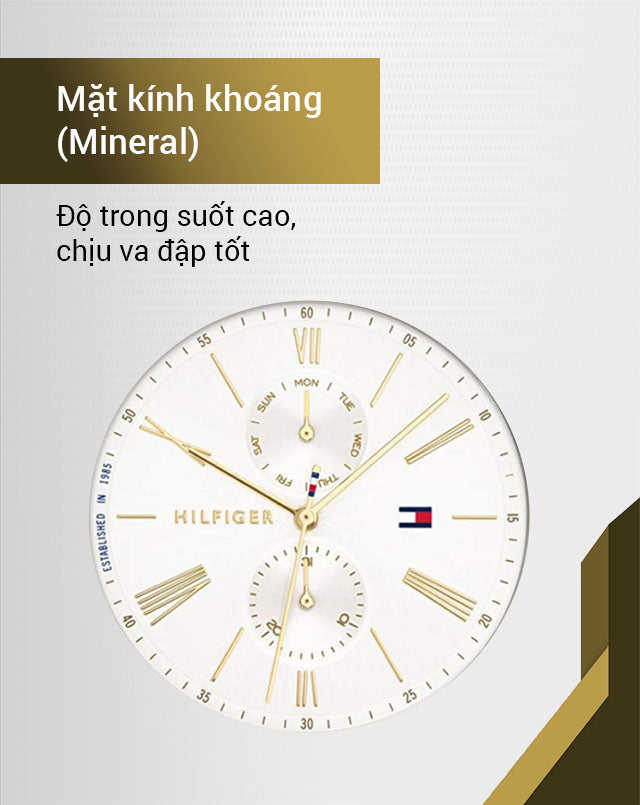 Multifunction movement Case thickness 7.6mmWhite dial Two-tone stainless steel and light yellow gold-plated mesh bracelet Water Resistance: 3 ATM Faucet spray or rain won’t hurt them as long as the case, crown and crystal remain intact