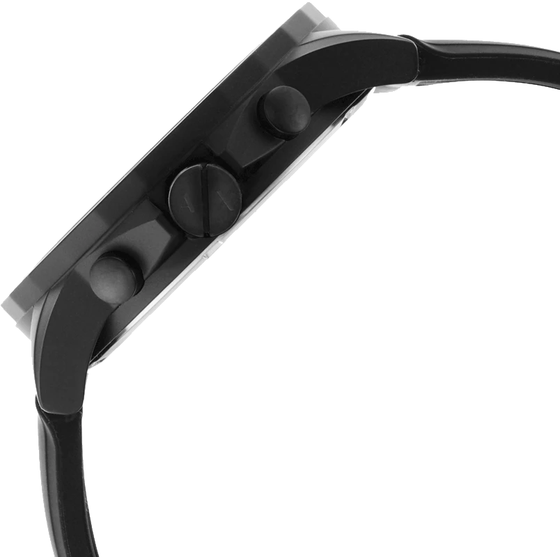 This robust and sturdy Men's chronograph Outerbanks watch from the House of Armani Exchange. This watch showcases an insanely detailed matte black dial with light gray stick indexes and a yellow second hand, chronograph movement. A bold nylon black case and a matching black silicone strap to complete the look.