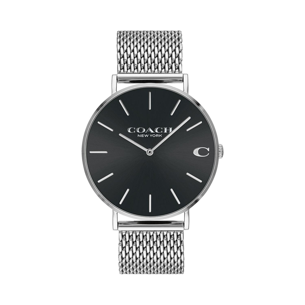 Coach Charles Silver Mesh Bracelet Black Dial Men's Watch 14602144