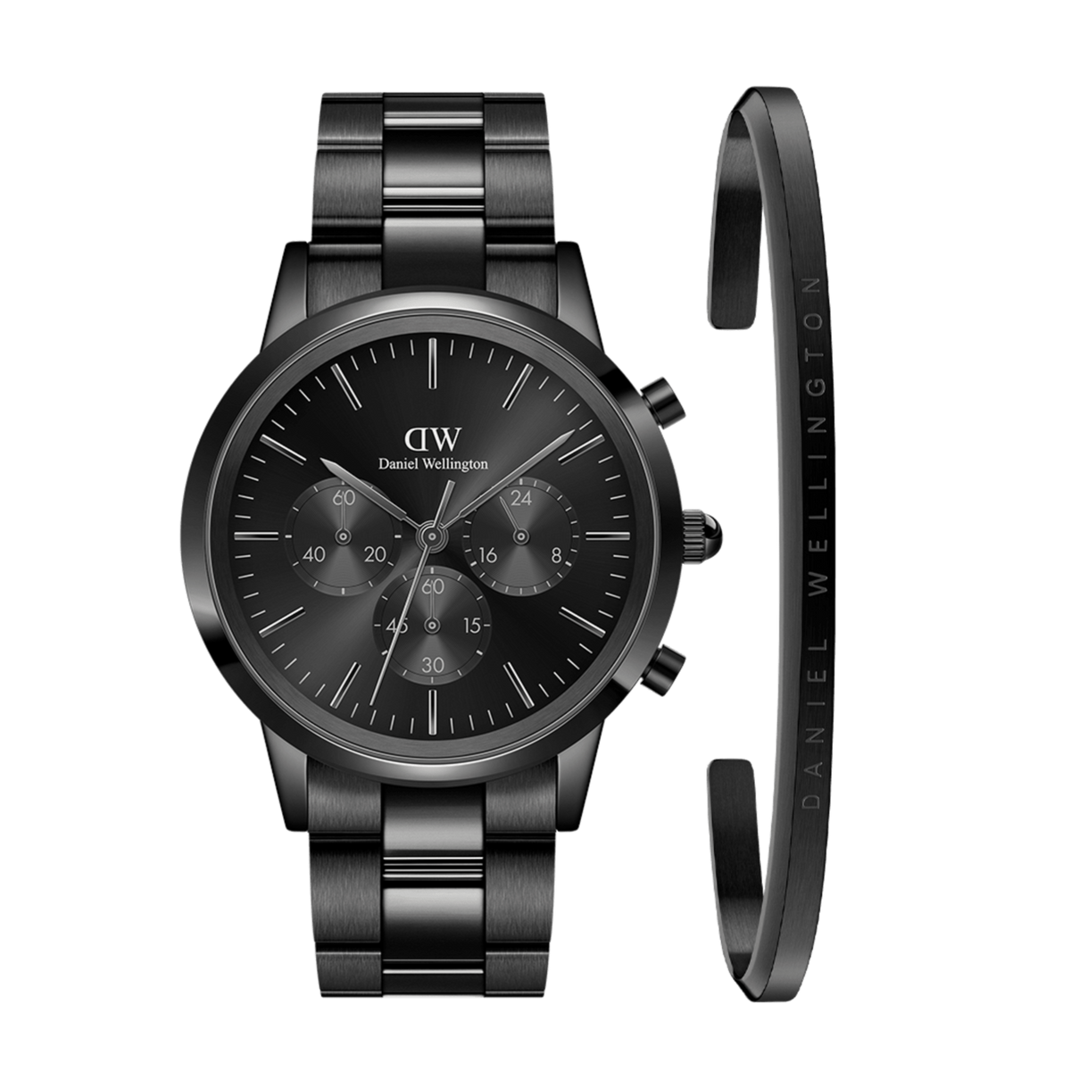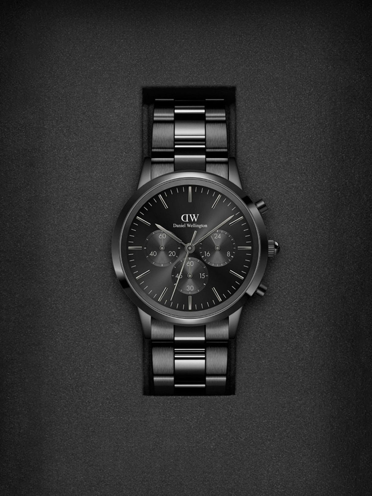 Daniel Wellington Iconic Chronograph Black Dial Black Steel Strap Watch For Men - DW00100642
