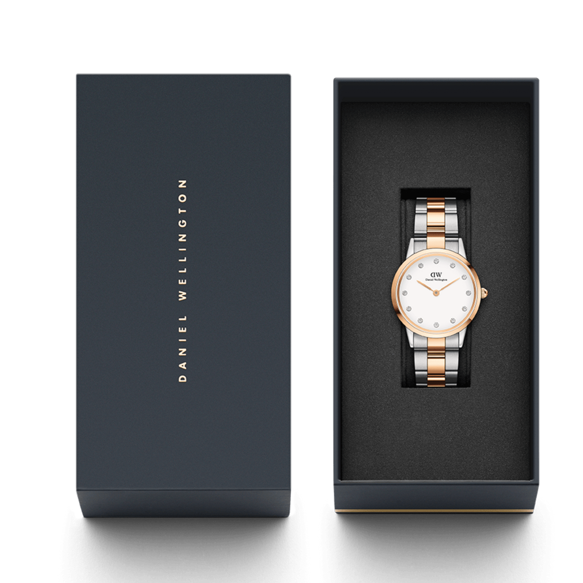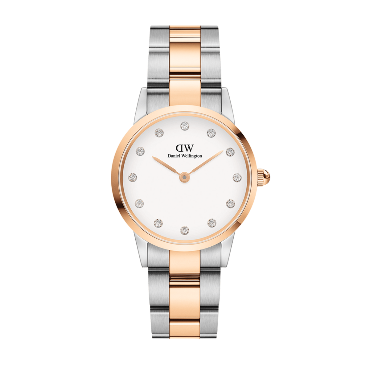 Introducing the Daniel Wellington Iconic Link watch For Women. Experience the perfect blend of style and functionality with its two-tone steel strap and elegant white dial. Never miss a beat with this timeless accessory that adds a touch of sophistication to any outfit.