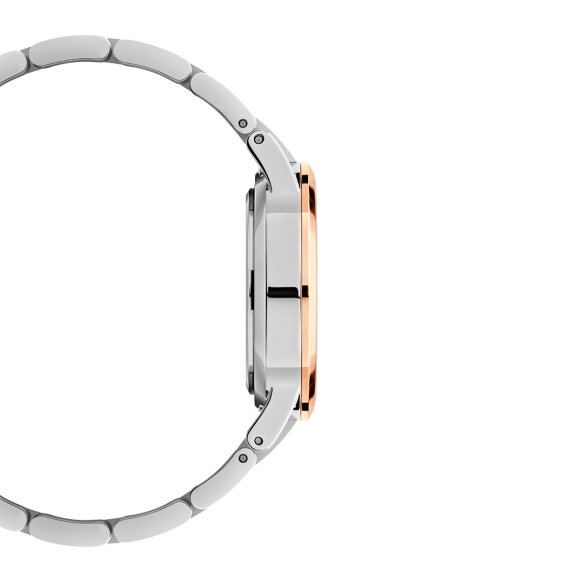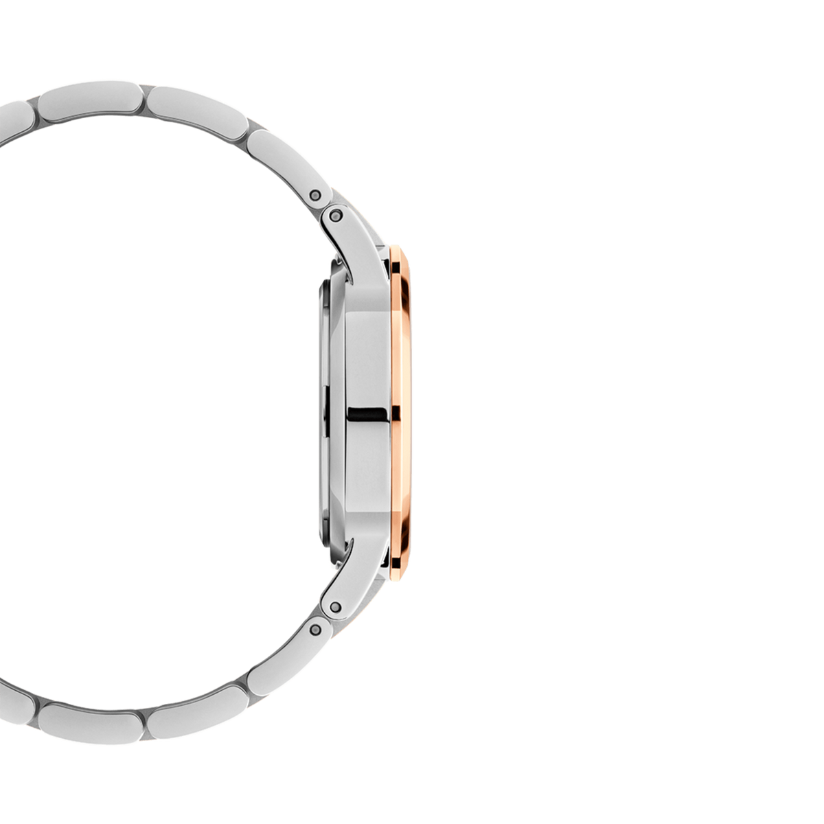 In this version, water resistance is limited. You should definitely not submerge the watch on purpose, but accidental contact with a small amount of moisture should not be harmful. The rose gold used to finish the case is not only a beautiful trend in recent years. It is above all a perfect meeting of contemporary fashion with timeless classics. The subdued silver color of the case determines the universality of the watch. The stainless steel used to make the case is characterized by high durability and scratch resistance.