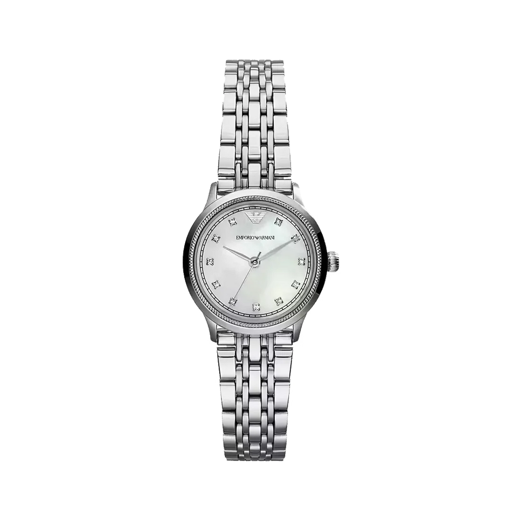 Emporio Armani Alpha Mother of Pearl Dial Silver Steel Strap Watch for Women - AR1803