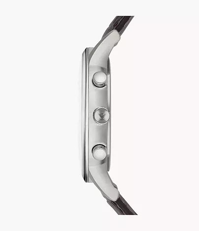 A must-have timepiece for all the watch aficionados, this men's analog watch from Emporio Armani will be a perfect pick. The black round dial is protected by a mineral glass. The genuine leather strap comes in a black hue that further elevates the look of the timekeeper. Besides, it is completed with a buckle clasp to ensure a secure fit on the wrist.