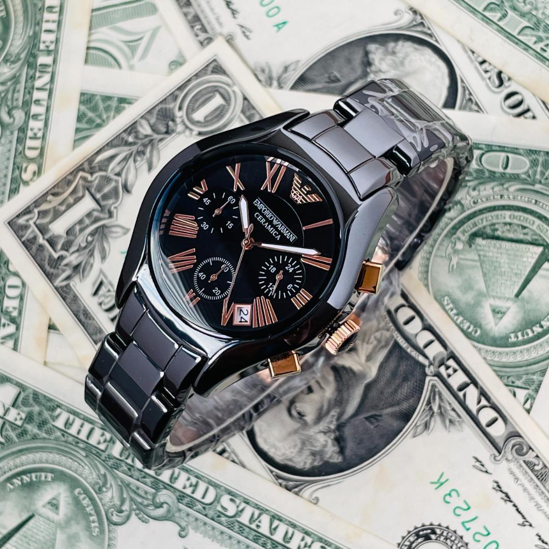 Emporio Armani Chronograph Black Ceramic Stainless Steel Dial Watch For Women - AR1411
