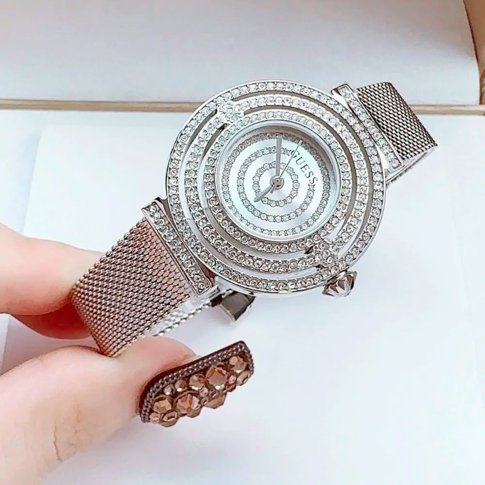 Guess Dream Crystals Silver Dial Silver Mesh Strap Watch For Women - GW0550L1