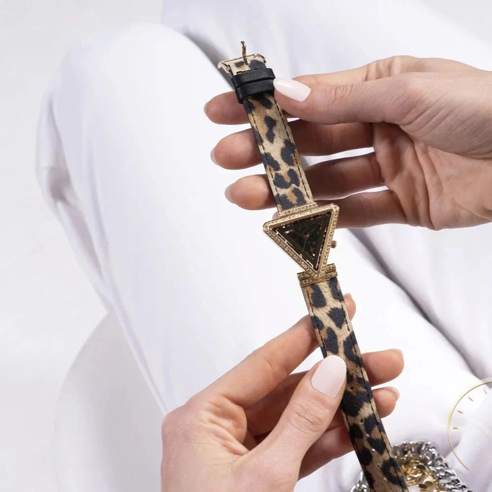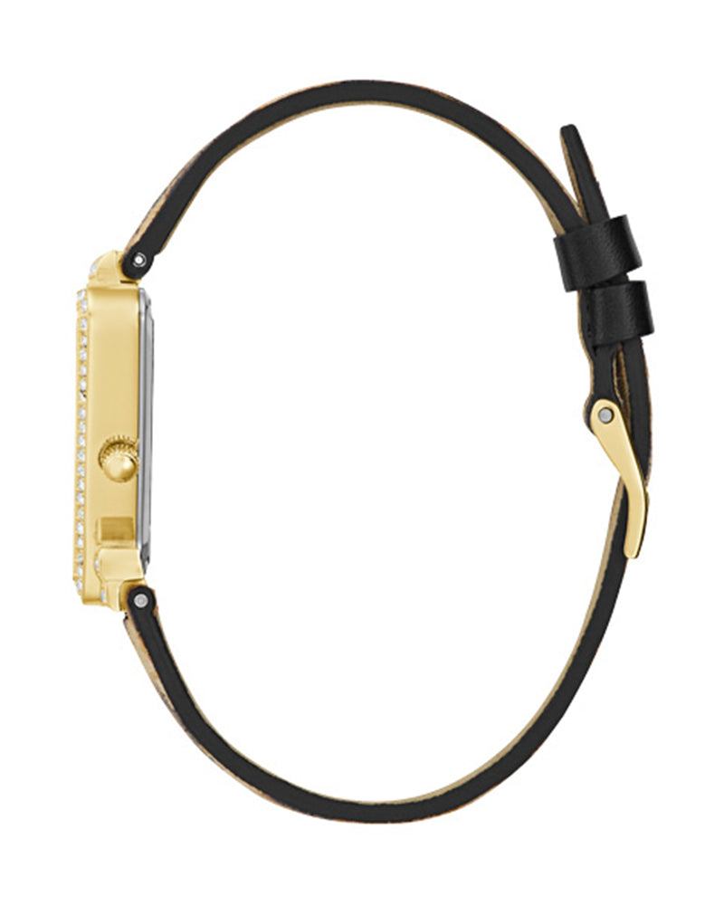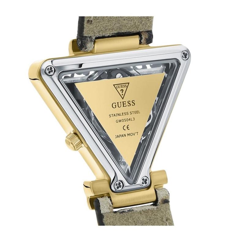 The Guess Fame GW0504L3 women's watch will appeal to lovers of animal designs. The triangular envelope decorated with crystals is set against a dial of the same shape. The water resistance of the accessory is estimated at 3 ATM.