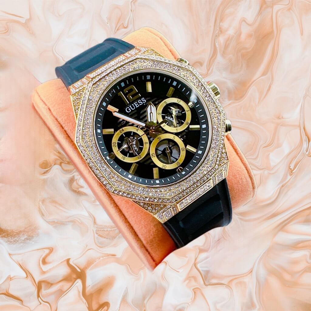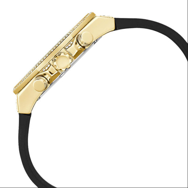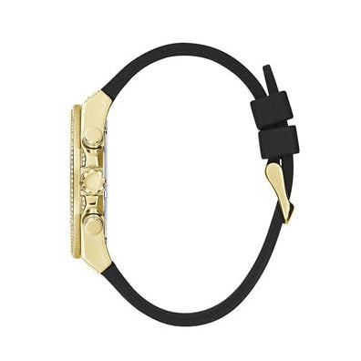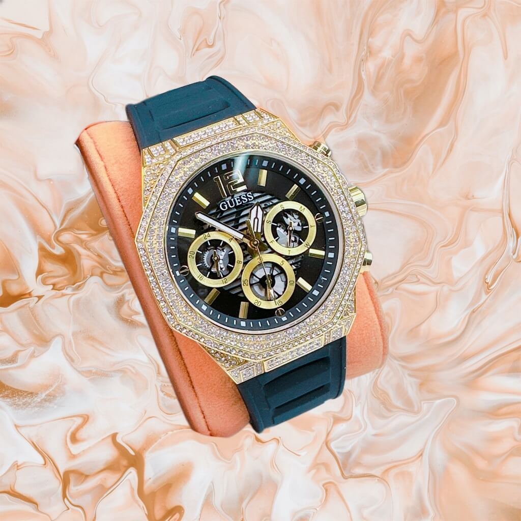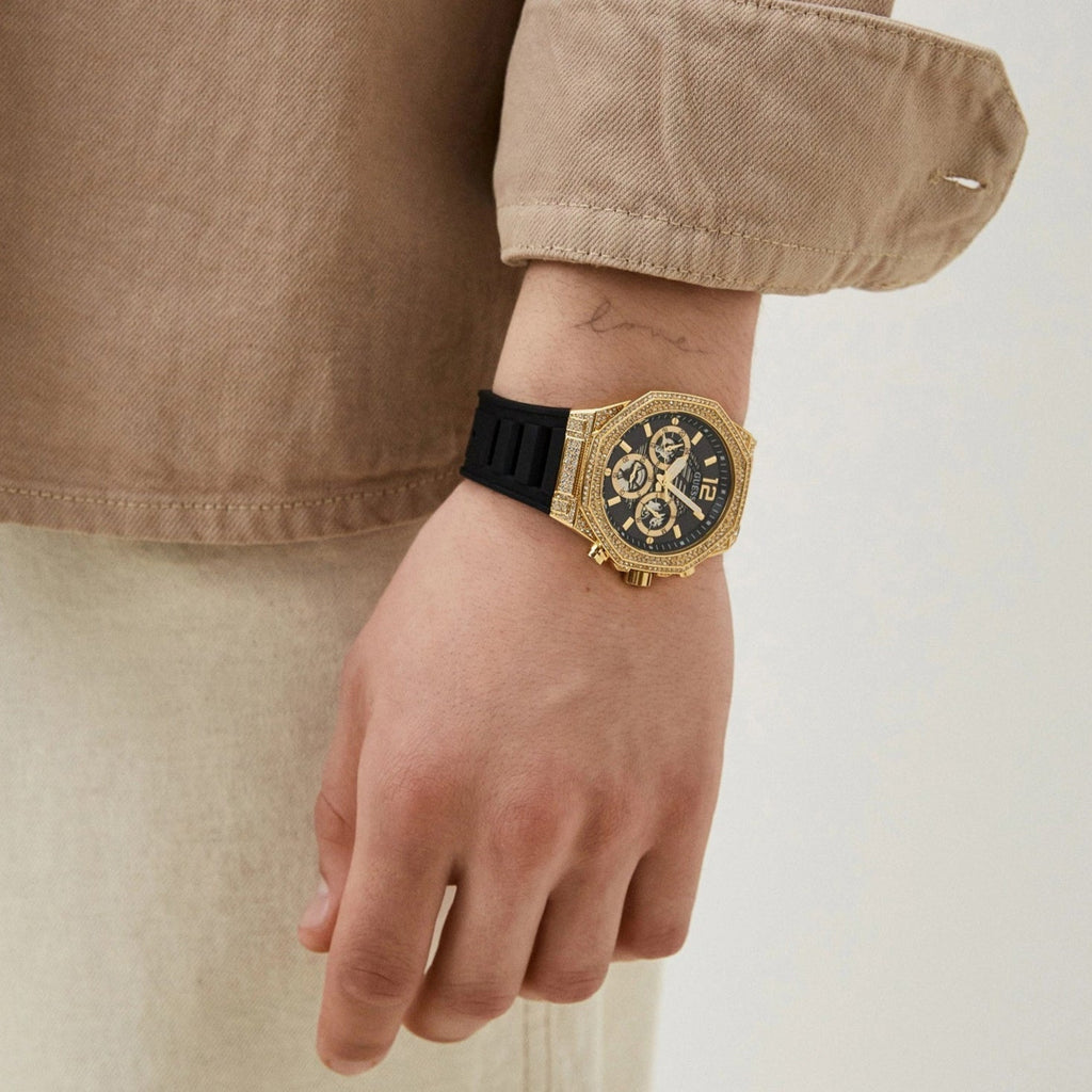 Guess Momentum Chronograph Diamonds Black Dial Black Silicone Strap Watch For Men - GW0518G2