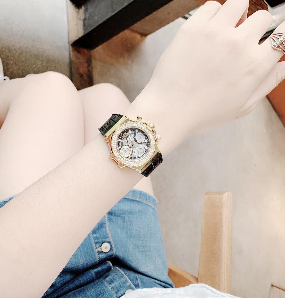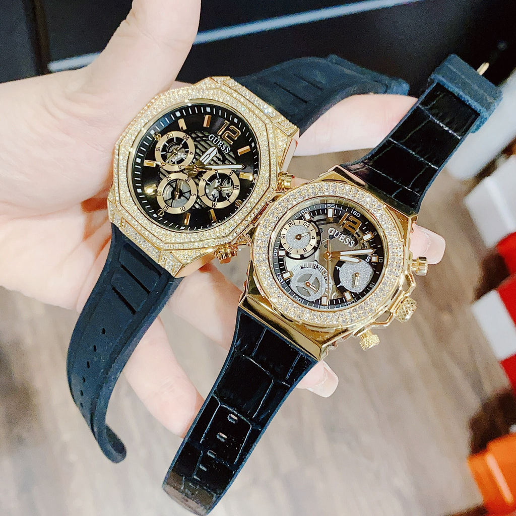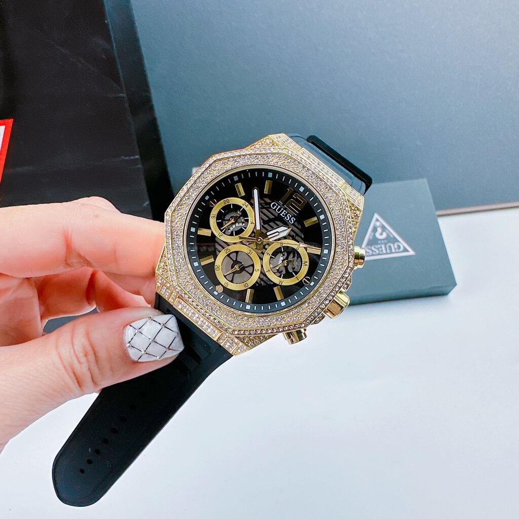 Guess Momentum Chronograph Diamonds Black Dial Black Silicone Strap Watch For Men - GW0518G2