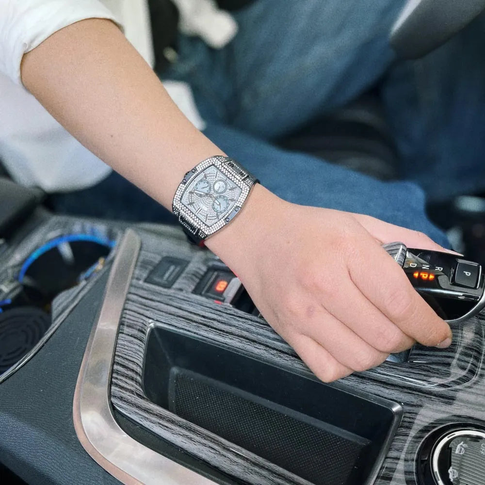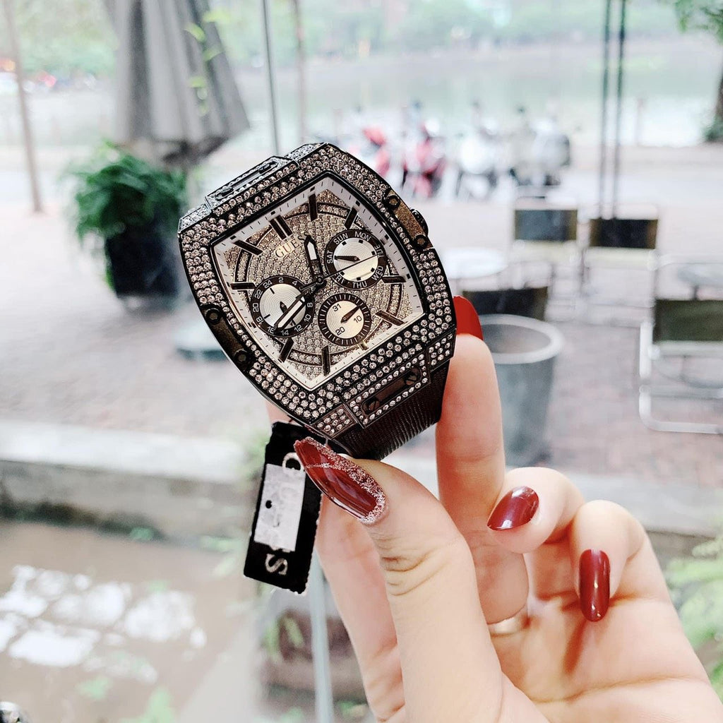 This original fashionable watch is set with beautiful stones and is perfect for any woman. - This multi-dial watch has a calendar function: day - date, 24-hour display, luminous hands