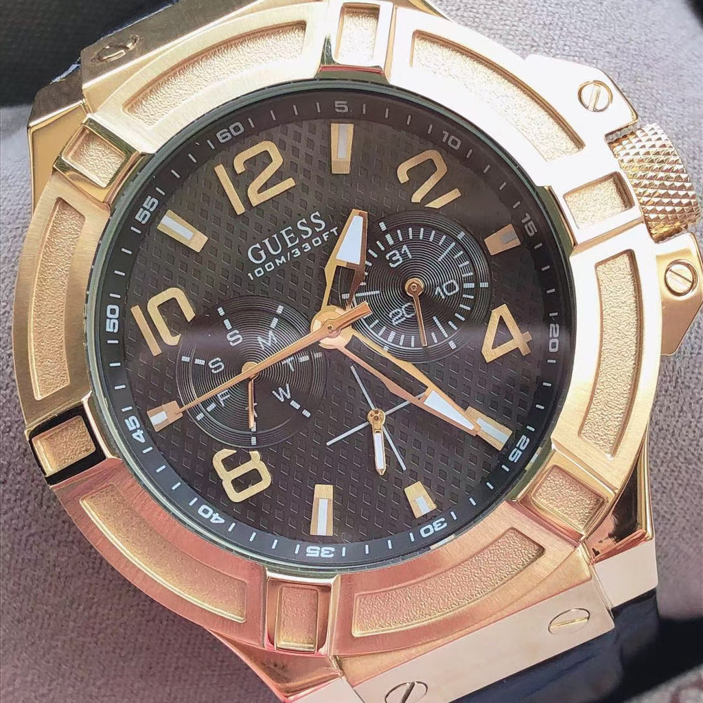 The Guess W0040G4 men's watch will add elegance and support your style. With high-quality workmanship from the Guess workshop, you don't have to worry about stepping on the wrong side. We guarantee 100% originality of goods and free battery replacement within 6 months. We stand behind the products in our offer. So don't hesitate and embellish your style with the Guess W0040G4 wristwatch. Characteristics: Case - steel Water resistance - 10 ATM Strap - leather Glass - mineral Dimensions - 47x12 mm Case shape - round Dial color - see photo Style - elegant Condition - new