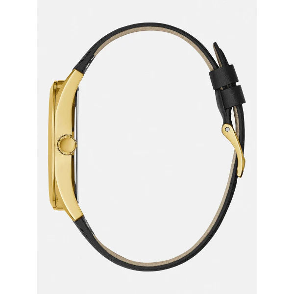 Guess Rigor Analog Black Dial Black Leather Strap Watch For Men - W0040G4