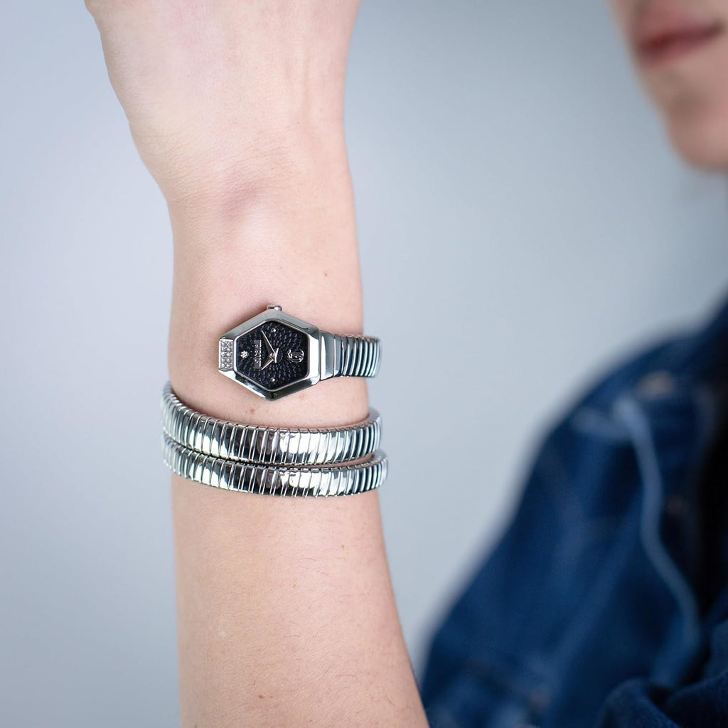 Just Cavalli Romina Black Dial Silver Steel Strap Watch for Women - JC1L395M0015
