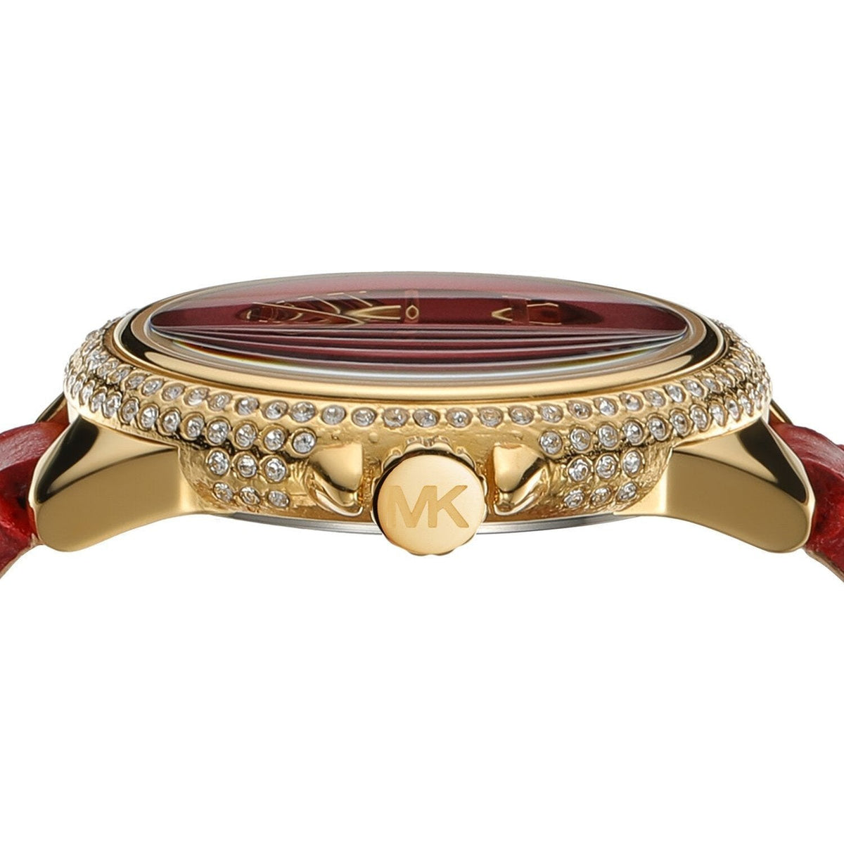 Michael Kors Camille Three-Hand Red Dial Red Leather Strap Watch for Women - MK4750