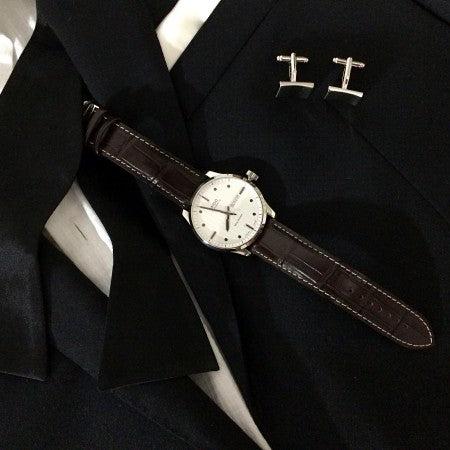 Stainless steel case with a brown leather strap. Fixed stainless steel bezel. Silver dial with silver-tone hands and dot hour markers. Minute markers around the outer rim. Dial Type: Analog. Luminescent hands and markers. Day of the week and date display at the 3 o'clock position. Mido calibre Powermatic 80 (ETA C07.621) automatic movement, based upon ETA 2824-2, containing 23 Jewels, bitting at 21600 vph, and has a power reserve of approximately 80 hours. Scratch resistant sapphire crystal.