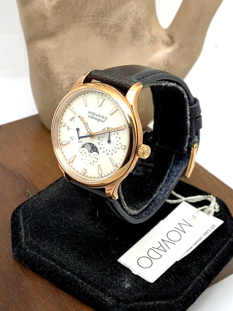 Movado Heritage Series Celestograph 3650011 is an incredible eye-catching Ladies watch. Case is made out of PVD rose plating while the dial colour is Mother of pearl. The features of the watch include (among others) a date function. This model has got 30 metres water resistancy - it can be worn in scenarios where it is likely to be splashed but not immersed in water. It can be worn while washing your hands and will be fine in rain. We ship it with an original box and a guarantee from the manufacturer.
