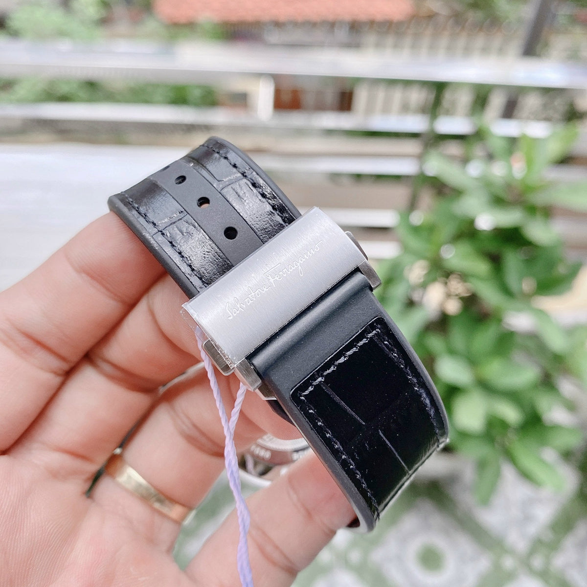 The new F-80 Classic collection comes with a slimmer and smaller case. Its sport-luxury spirit has made it a bestselling Salvatore Ferragamo Timepieces line. Its genuine leather strap flaunts a black hue that accentuates the look of the watch. Furthermore, it is completed with a deployment buckle clasp that ensures a secure fit on the wrist.