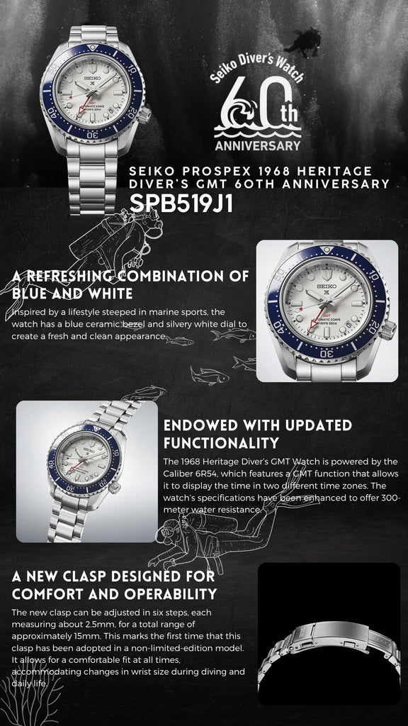 Seiko Prospex 1968 Heritage Diver's GMT 60th Anniversary White Dial Silver Steel Strap Watch for Men - SPB519J1