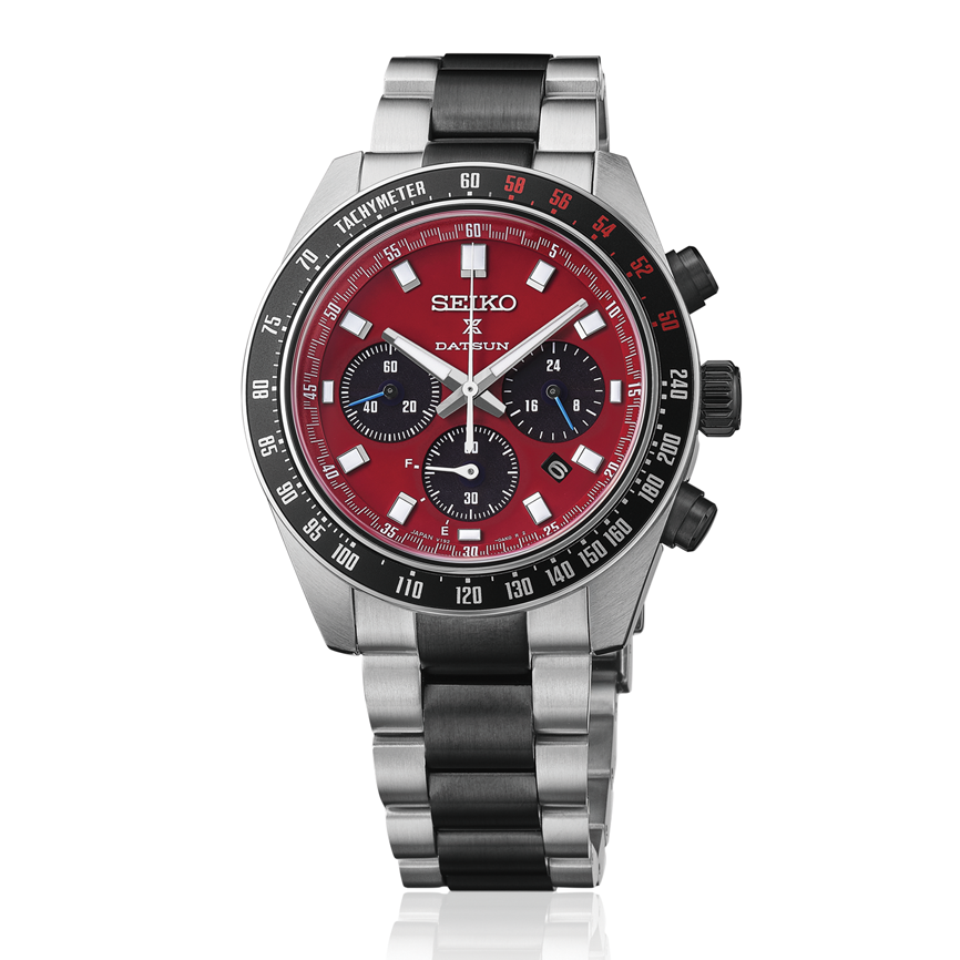 Seiko Prospex Speedtimer Solar Chronograph Datsun 240Z Collaboration Limited Edition Red Dial Two Tone Steel Strap Watch for Men - SBDL123