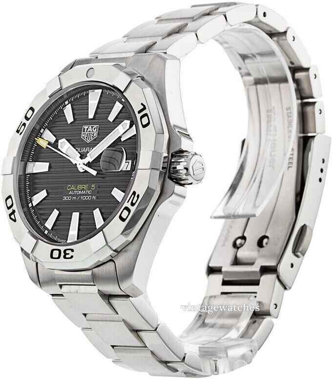 Brand New Authentic Tag Heuer Aquaracer 300M Automatic 41mm Black Dial Stainless Steel Men's Watch Model WBD2110.BA0928. Stainless Steel case with Silver Stainless Steel Brushed watch band. Deployment with Push Button and Foldover clasp. Uni-Directional Rotating bezel.