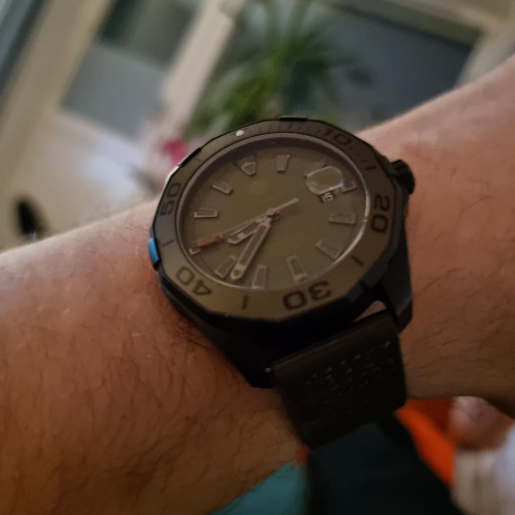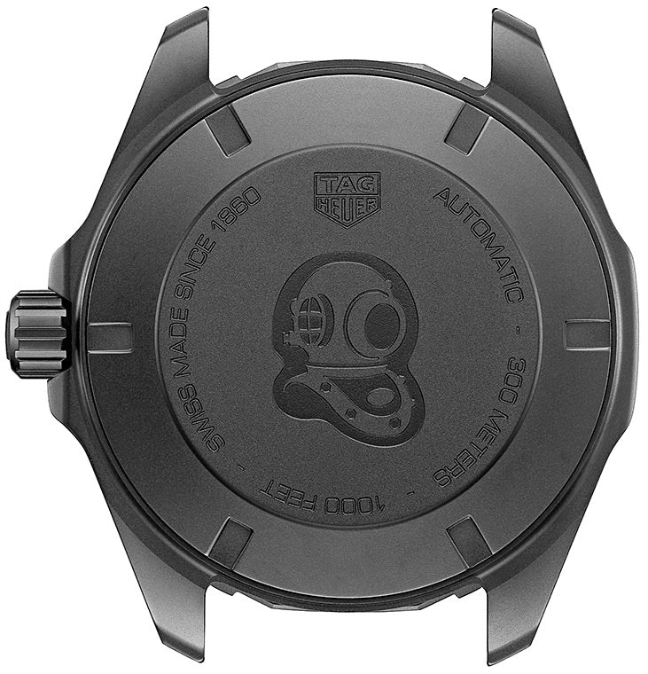 Swiss-made, this bold TAG Heuer Aquaracer is an aesthetic 43 mm watch. This model features a Titanium Black PVD case and a Calibre 5 Automatic movement.