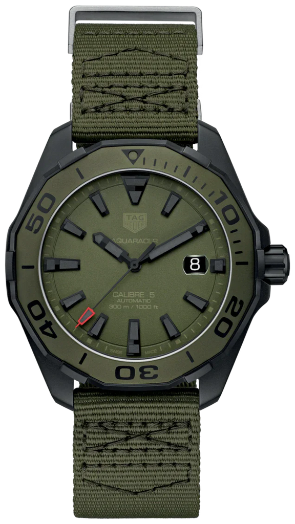 Tag Heuer Aquaracer Automatic Green Dial Khakhi Green Nylon Strap Watch for Men - WAY208E.FC8222
