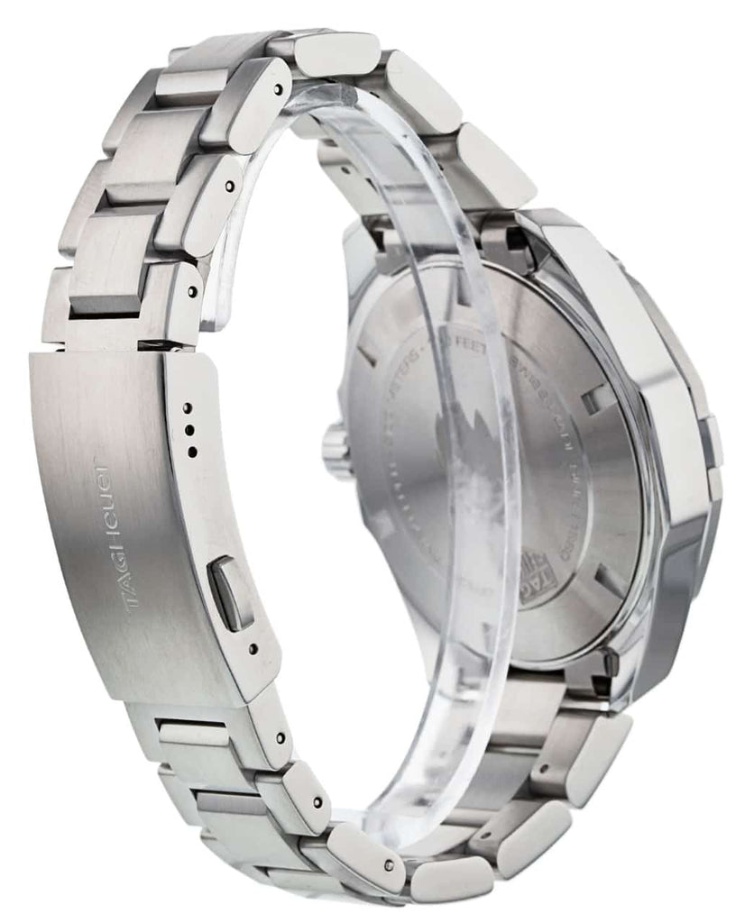 Swiss-made, this bold TAG Heuer Aquaracer is an aesthetic 43 mm watch. This model features a Steel case and a Calibre 5 Automatic movement.
