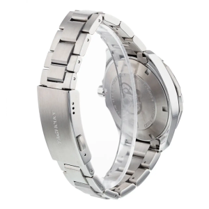 Water resistance to 300m, screw-down crown, unidirectional rotating bezel, easy-read markers, anti-reflective sapphire crystal and bracelet with diver extension and safety clasp to prevent accidental opening.