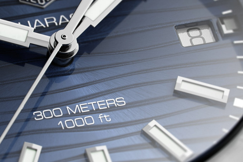 The Aquaracer’s superlative diving credentials make it the perfect every-day watch. These include: hour markers and hands with Super-LumiNova®, steel bracelet with double safety push-buttons and diver extension, and “Easy-Grip” screw-down winding crown.