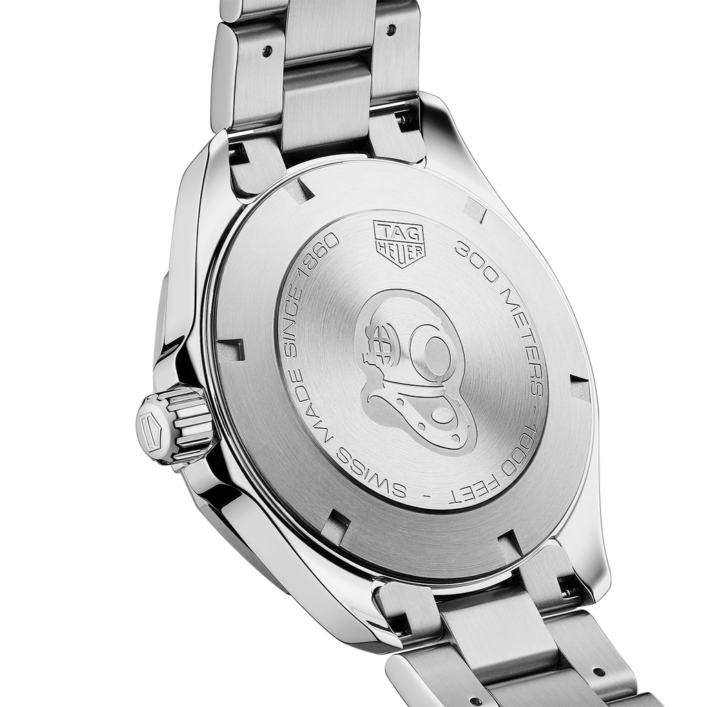 For better visibility, the sapphire crystal’s interior is anti-reflection treated. An integrated diver extension allows the steel bracelet to be worn over a suit. Fully water and shock resistant, this is a true diving instrument.