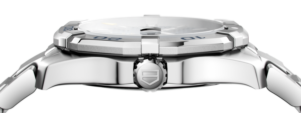 The oversized, easy grip crown sports the TAG Heuer logo. The hands feature luminescent coating. The dial is swept elegantly by a polished seconds hand with a yellow tip field with Super-LumiNova®.