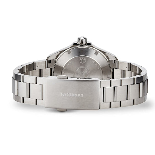 Finding the perfect balance between function and form, this TAG Heuer Aquaracer Men’s Watch is powered by a Swiss-made quartz movement and sits within a durable 41mm stainless steel case.