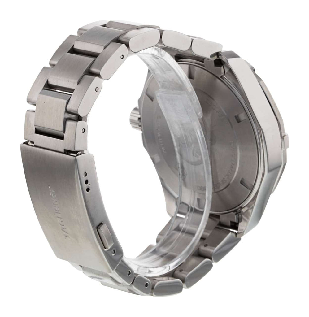 The anti-reflective sapphire crystal is virtually unbreakable and the steel 60-minute scale turning bezel is unidirectional, crucial safety features of all authentic professional sports watches