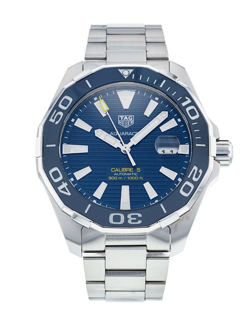 Tag Heuer Aquaracer Calibre 5 Blue Dial Silver Steel Strap Watch for Men - WAY201B.BA0927