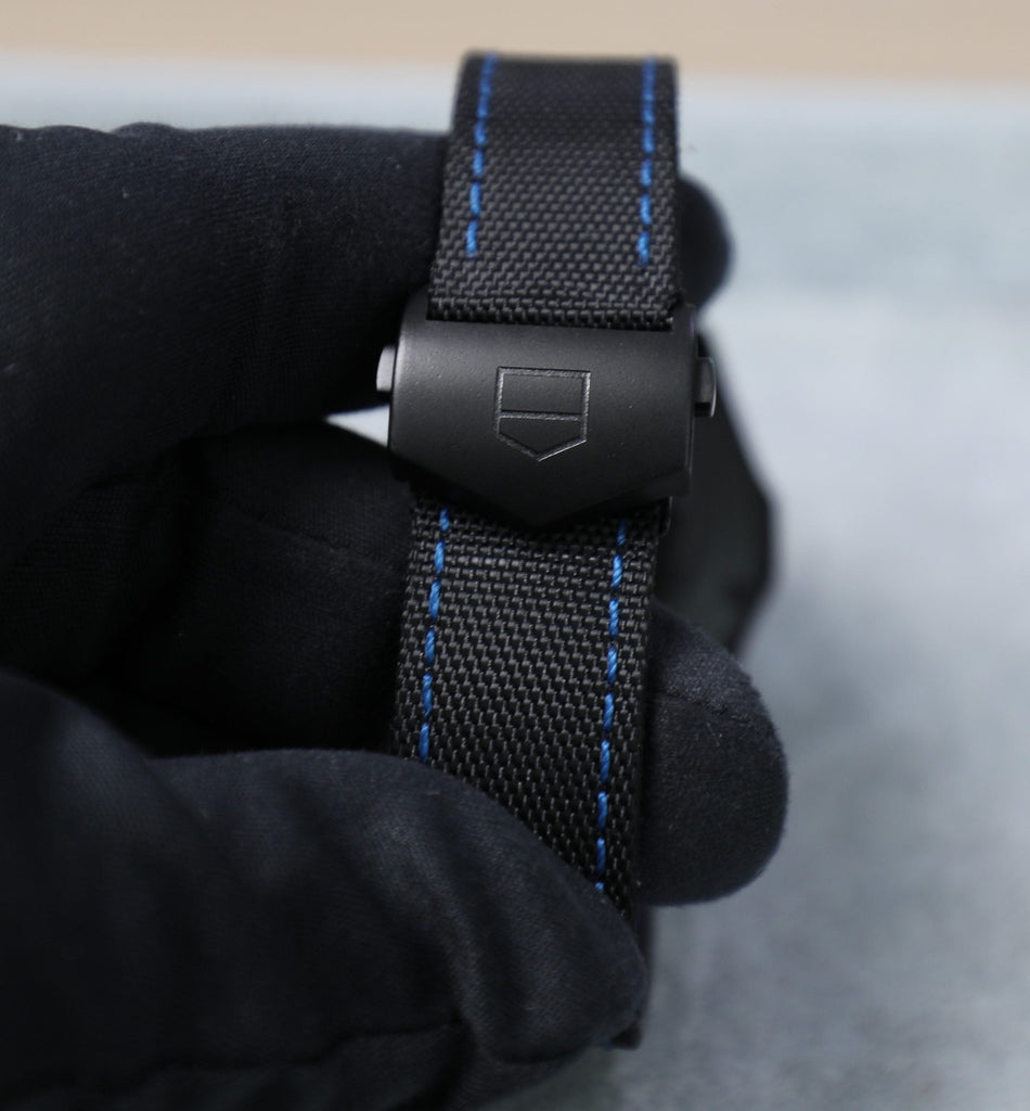 TAG Heuer Aquaracer range of watches pays homage to TAG's experience of making ultra reliable and precise time pieces. The Aquaracer collection is built upon this exciting heritage of innovation. ThisTAG Heuer Aquaracer Calibre 5 'Carbon Collection' Mens Watch WBD218C.FC6447 features a 41mm (approximate size) titanium carbon PVD case fitted with a carbon dial, sapphire crystal glass, and a date complication. Powered by an automatic movement, this stunning timepiece is also fitted with a nylon strap finished with a deployment clasp for added security. This timepiece is water resistant to 300 metres.