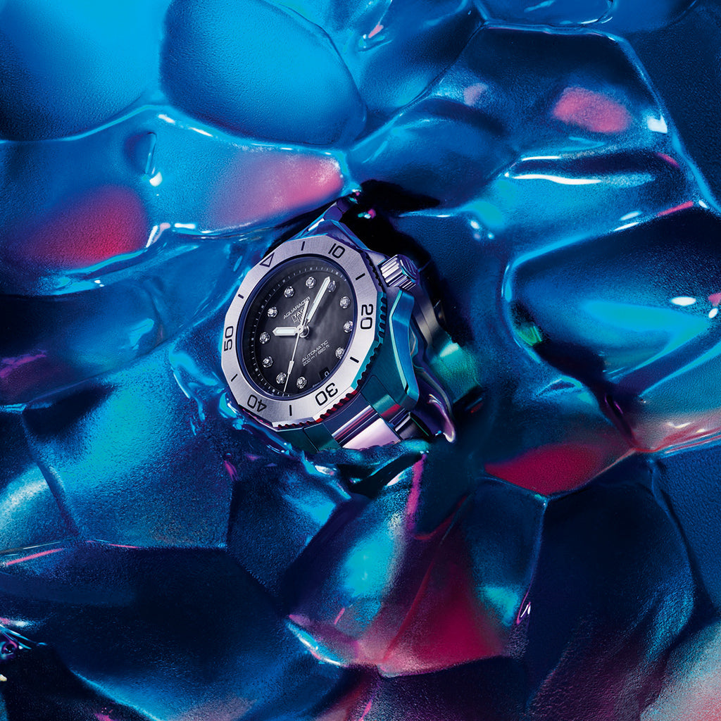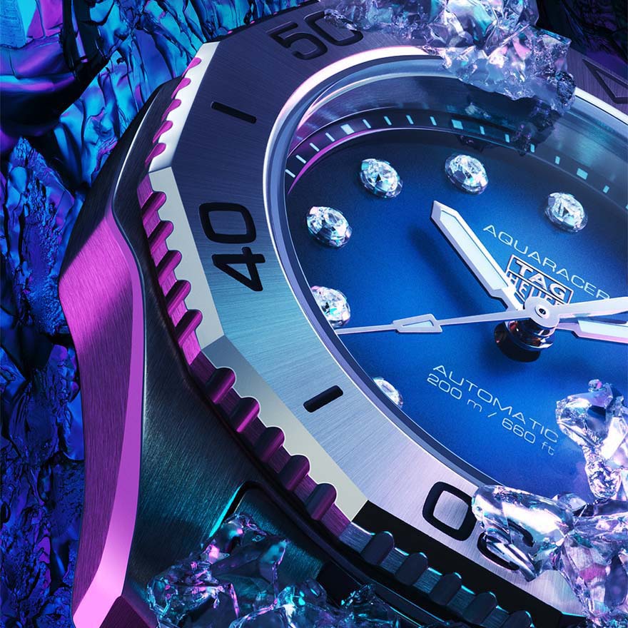 Refined ergonomics and case finishing add to the technicity of this 30mm steel TAG Heuer Aquaracer, made to overcome your personal limits.