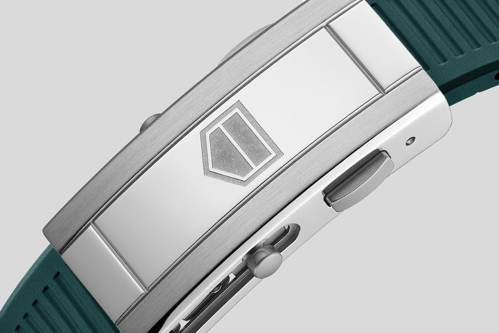 Complete with a fine adjustment system and a high quality steel buckle, the refined rubber strap brings greater comfort and versatility.