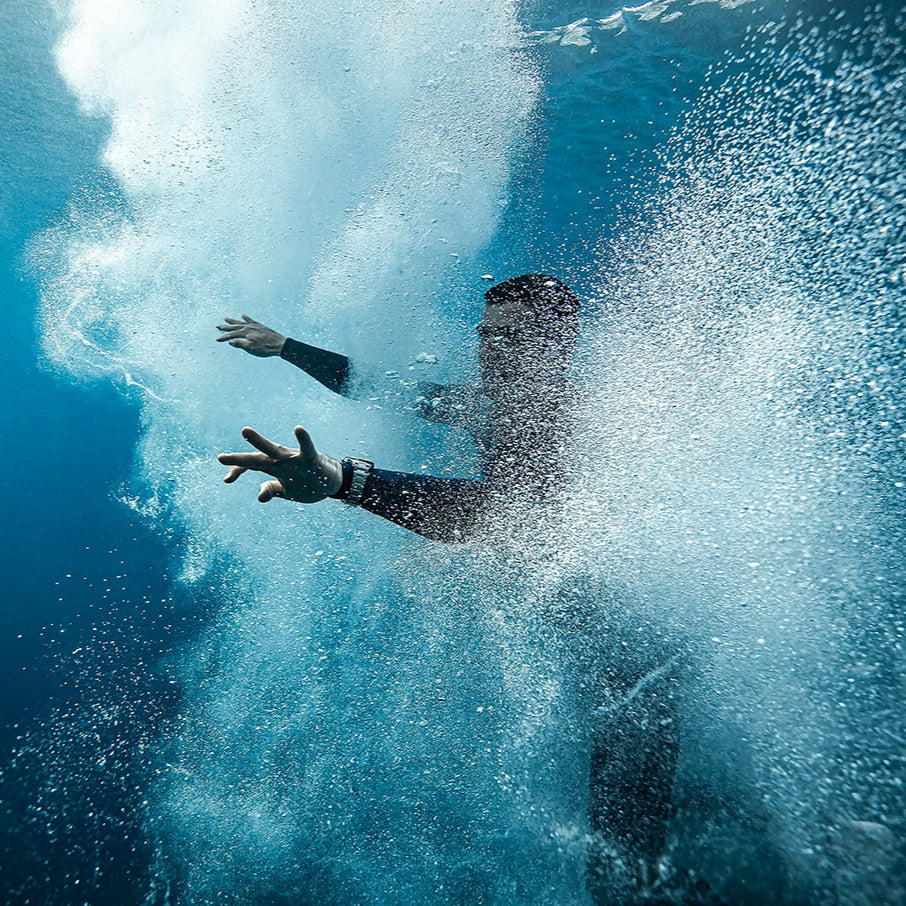 A screw-down crown preventing water entry, scaled down to take on the most intense conditions. Pressure-proof and water resistant to 300m.