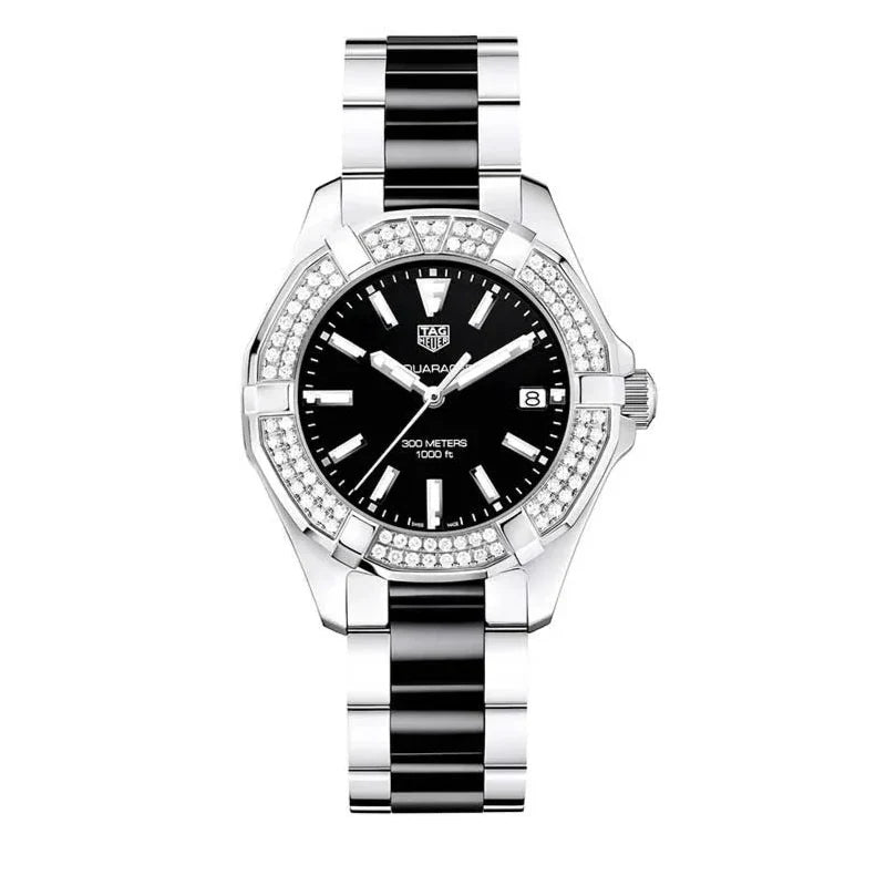 Tag Heuer Aquaracer Quartz Diamonds Black Dial Two Tone Steel Strap Watch for Men - WAY131E.BA0913