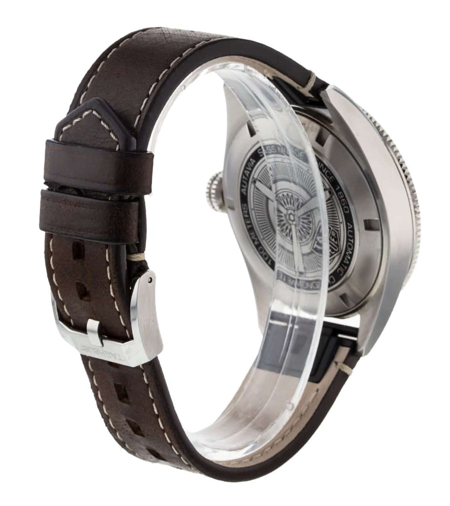 Protected by a domed and beveled sapphire crystal with double anti-reflective treatment, the Autavia’s stainless-steel case has brushed and polished lugs and is water resistant to 100 meters.