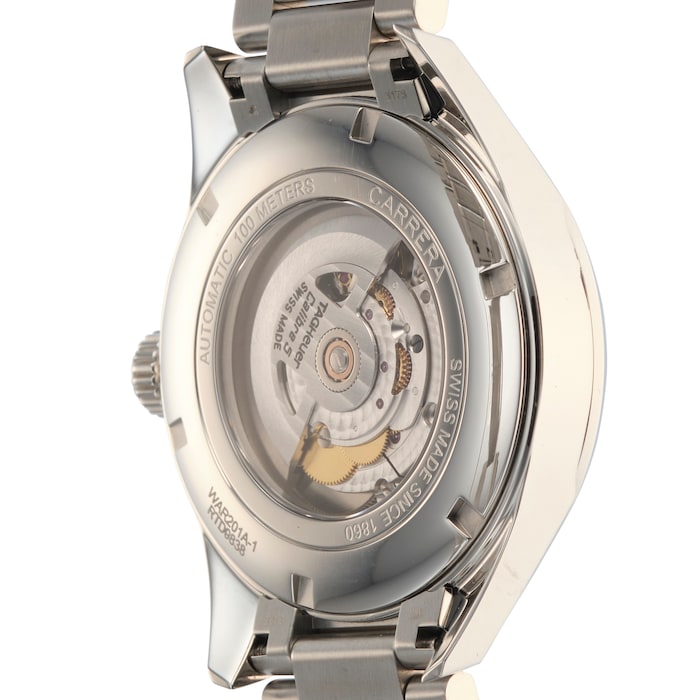 The Tag Heuer Carrera WAR201A.BA0723 comes with an Automatic movement with 10 Bar (100 meters) of water resistance, Stainless steel case material, Steel bracelet and Black dial color with 38 Hours of Power reserve.