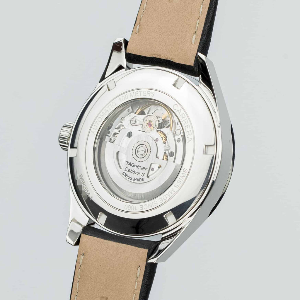 Swiss-made, this bold TAG Heuer Carrera is an aesthetic 41 mm watch. This model features a Steel case and a Calibre 5 Automatic movement.