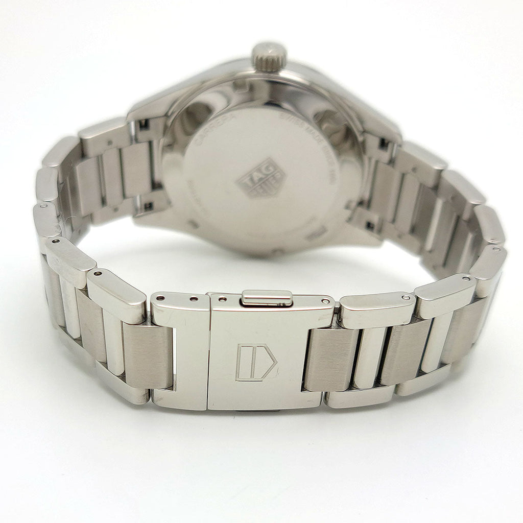 Swiss-made, this elegant TAG Heuer Carrera is an aesthetic 39 mm watch. This model features a Steel case and a Quartz movement.