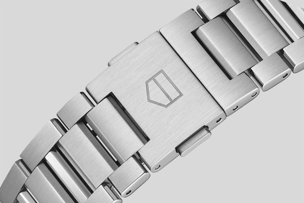 The 44mm fine-brushed steel case blends perfectly with the bevelled domed sapphire crystal with double anti-reflective treatment. The signs of a challenger.