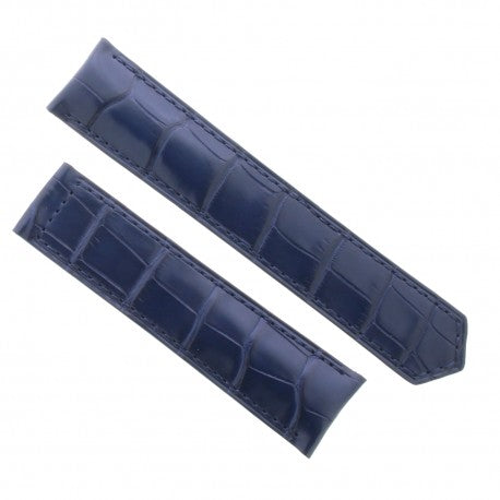 The elegant blue alligator strap with steel folding clasp matches the dial, and brings functionality on the go thanks to the day and date at three o’clock.